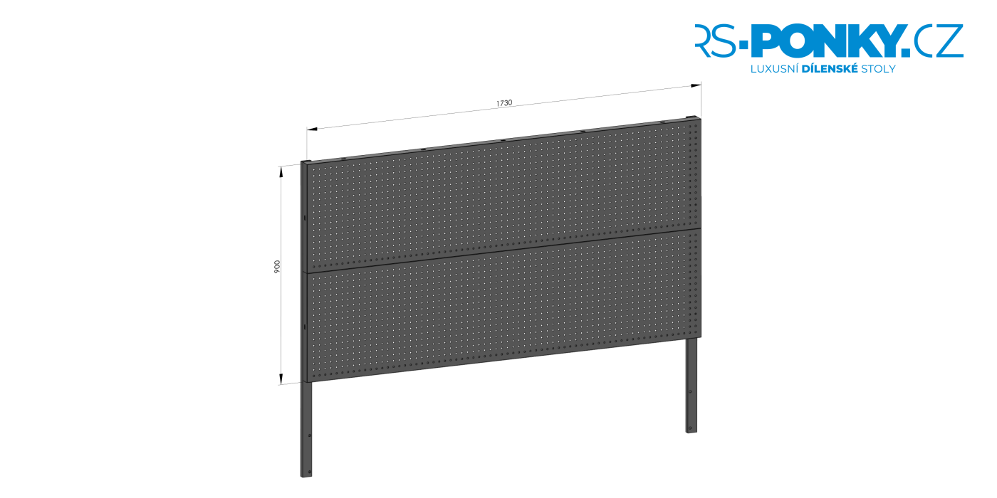 Dierovaná stena na mieru pre ponky dĺžky 173cm, na zavesenie vášho náradia, prípravkov, tovaru, jednoducho čohokoľvek čo potrebujete mať veľmi rýchlo a prehľadne k dispozícii. Stena je navrhnutá na spojenie s dielenským ponkom dĺžky 173cm. Nie je nutné stenu vešať na stenu za ponkom, ale skrutkuje sa priamo k dielenskému ponku, môžete ju tak využiť aj v priestore uprostred dielne. Systém zavesenia je realizovaný prostredníctvom kovových háčikov rôznych dĺžok pre efektívnu a rýchlu manipuláciu. Rozteč otvorov na stene je 25mm, priemer otvorov je 7,0mm. Celkový rozmer steny je 173x90cm. Skladá sa z dvoch čiastkových kusov, ktoré sú vzájomne zoskrutkované k sebe. Títo 2 panely sa priskrutkujú na 2 jekly ktoré sú súčasťou dodávky. tento celok sa priskrutkuje zo zadnej strany do dielenského ponku. Spodná hrana steny leží na hornej hrane nosa stola aby všetko spolu ladilo a zaťaženie zo steny sa roznieslo po celej dĺžke stola. U dielenských ponkov dĺžky 173cm vyrobených od 1.12.2025 sú predpripravené matice na uchytenie steny pri každom kuse. Pri stoloch vyrobených pred týmto dátumom je nutné navŕtať zo zadnej strany stola 4x 10mm otvorov.